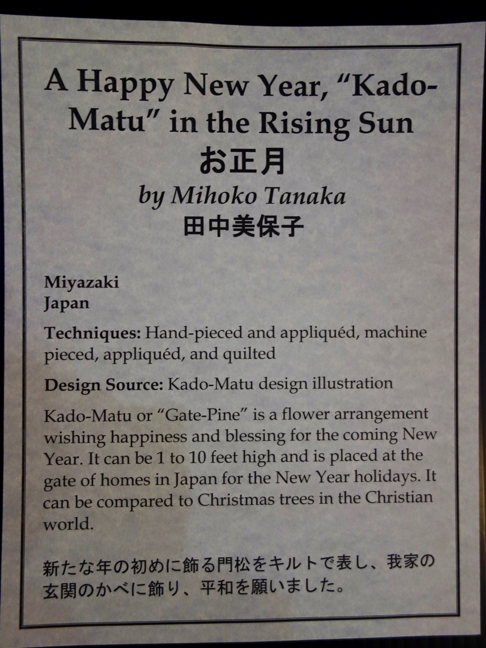 "A Happy New Year, "Kado-Matu" in the Rising Sun" by Mihoko Tanaka was featured at Houston 2016.