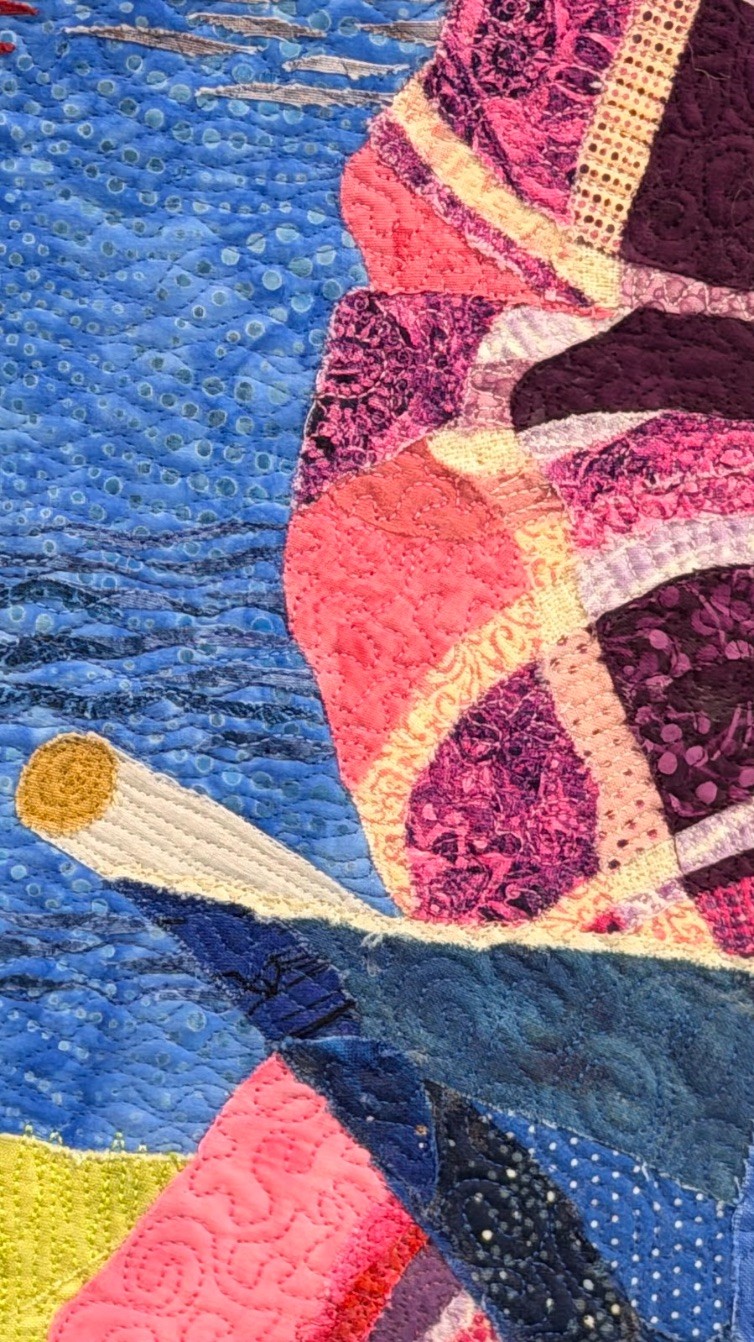Techniques: Glued Fabric Collage; Machine Quilting