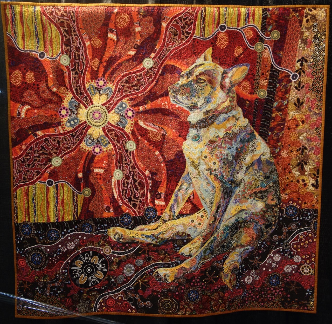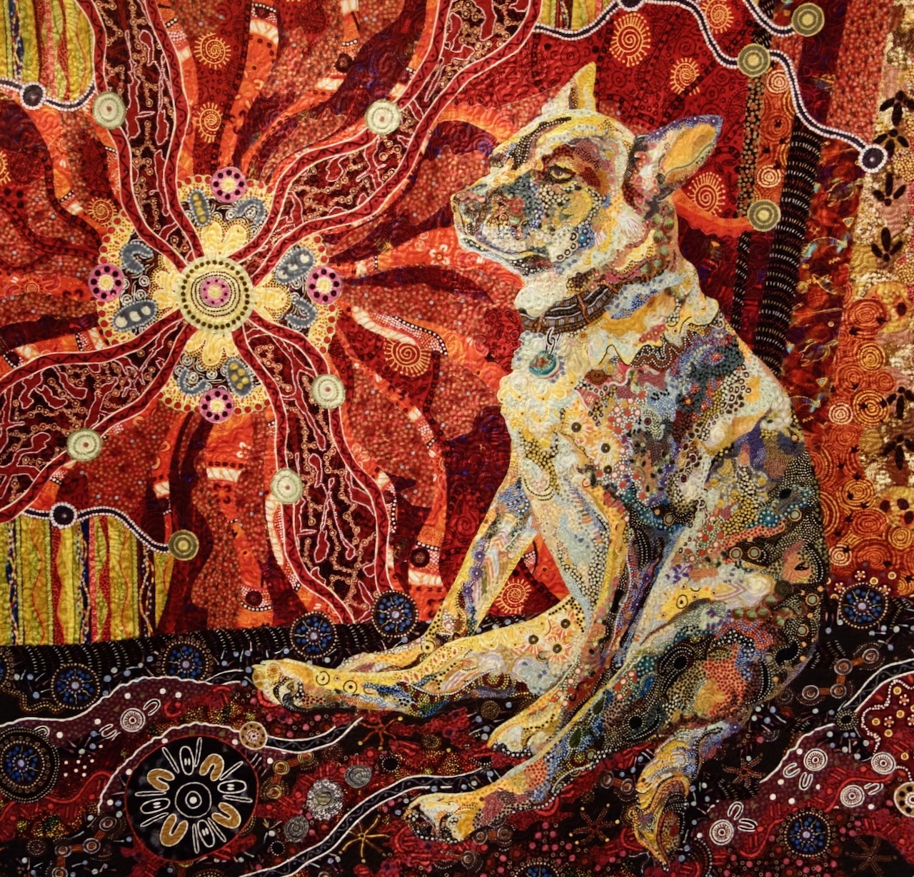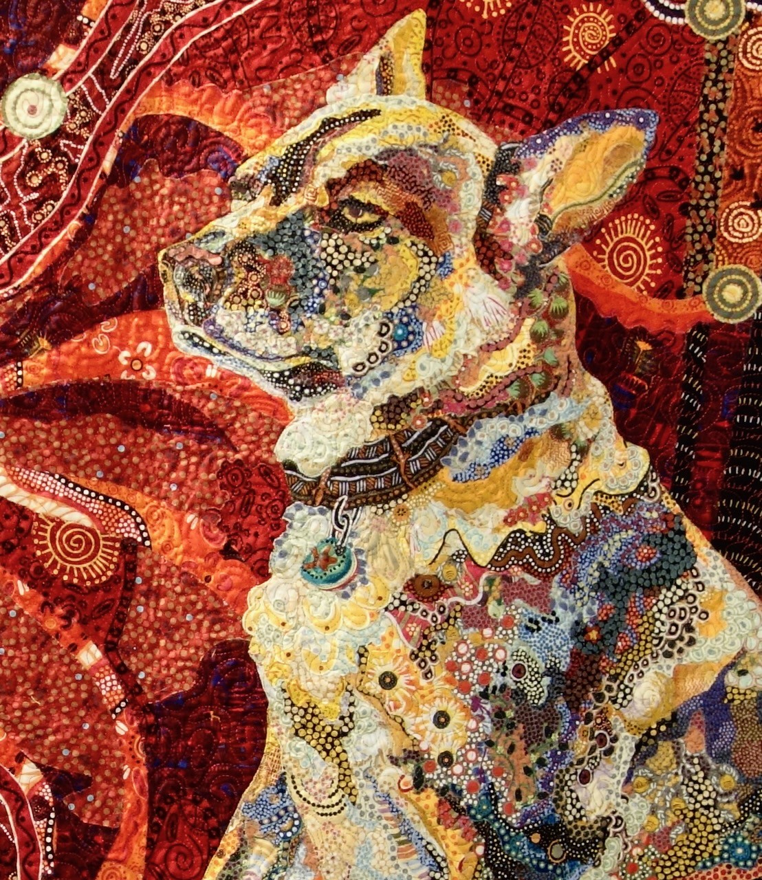 portrait was created using only fabrics with Australian Aboriginal designs. Sitting in the sun, in her very lady-like way,