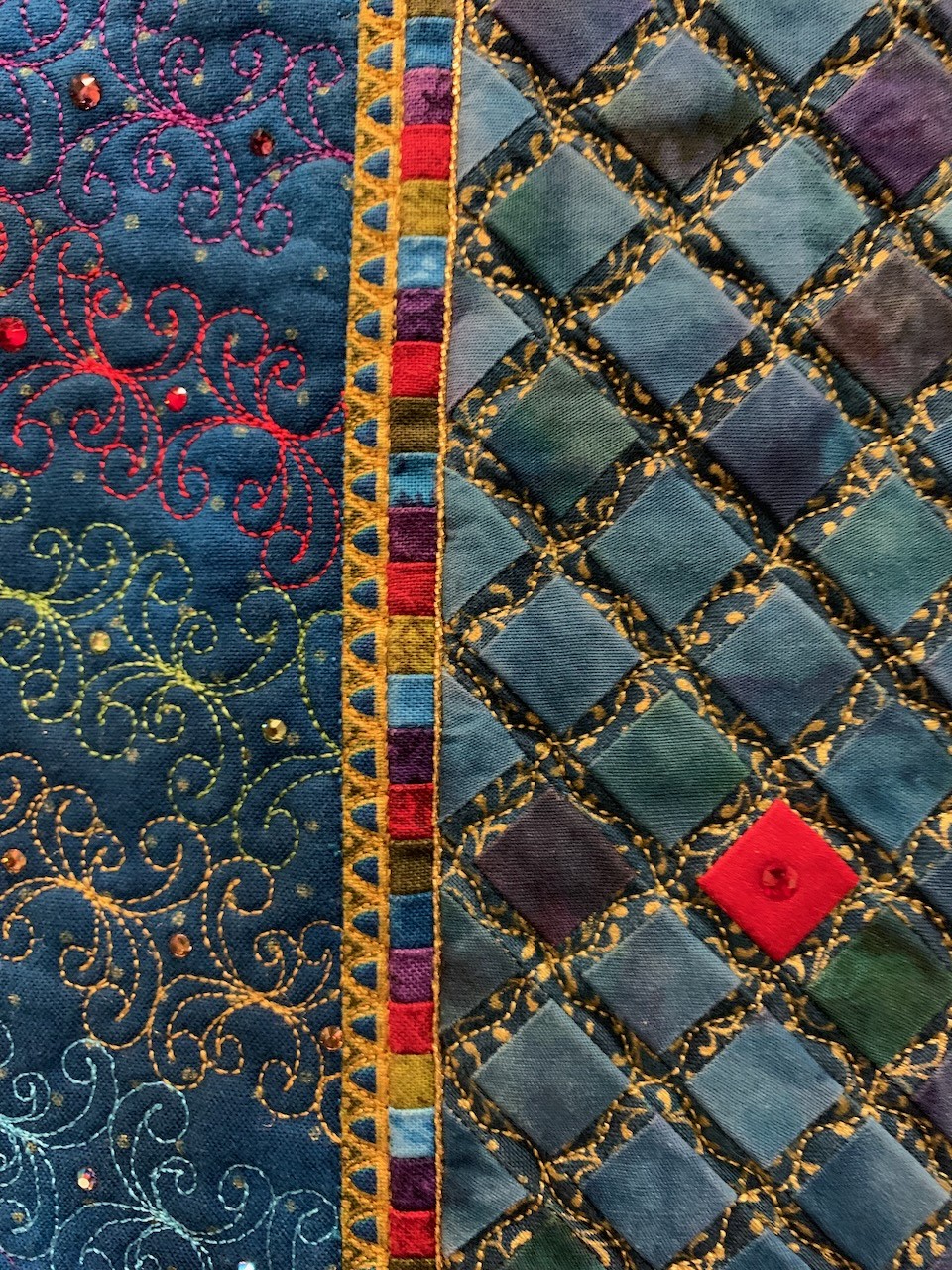 Finished in 2017 after about 5,000 hours of work, this dazzling quilt is made of 15,000 tiny pieces of cotton and silk fabric, metallic threads and Swarovski crystals. It won the Handi Quilter Best of Show Award at the 2018 International Quilt Festival in Houston.