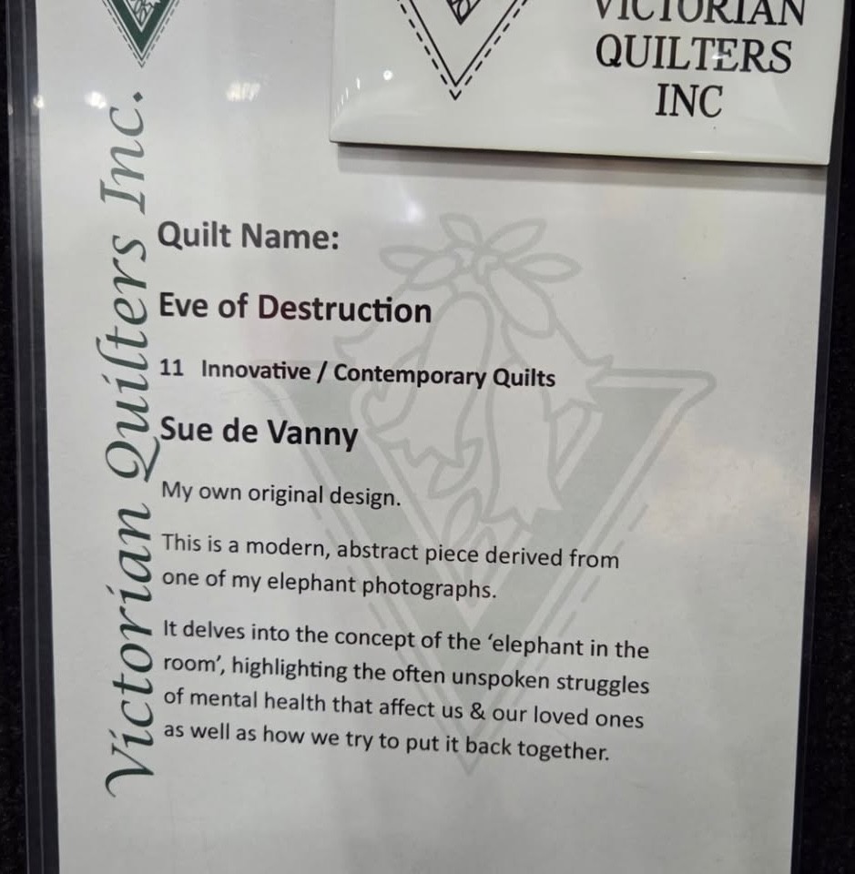 "Eve of Destruction" by Sue de Vanny won Best of Show at the Victorian Quilters Quilt Showcase 2025.
