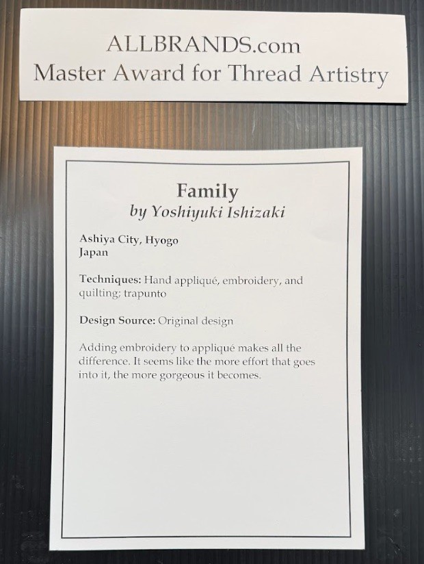 "Family" by Yoshiyuki Ishizaki won the Master Award for Thread Artistry at Houston International Quilt Festival 2025.