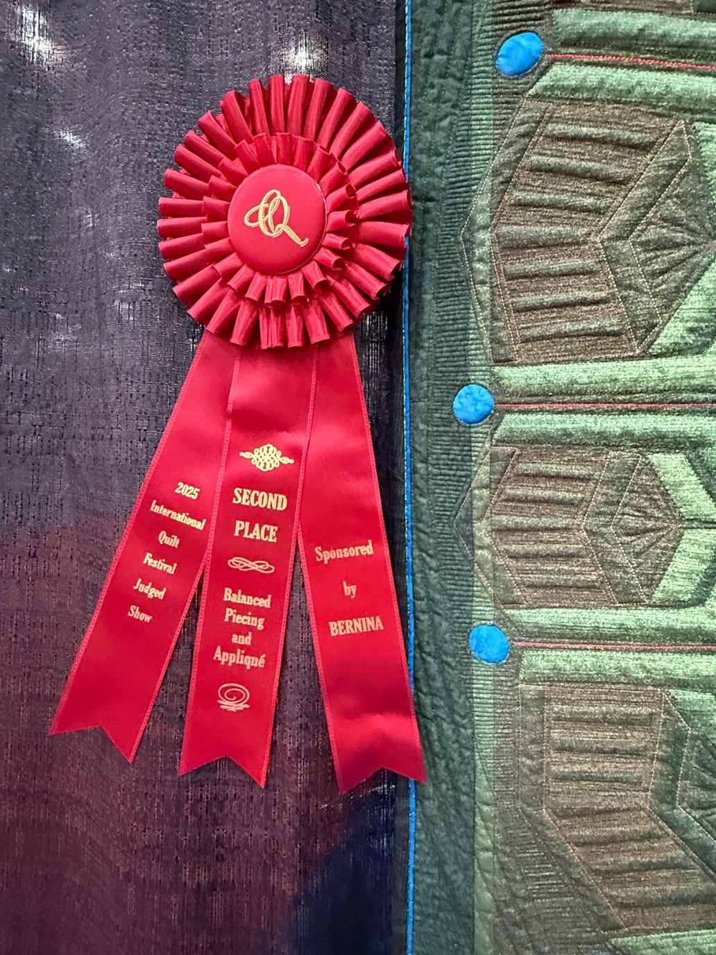 Second Place - Balanced Piecing and Appliqué (Sponsored by BERNINA) at Houston International Quilt Festival 2025; Honorable Mention - Wall Quilts: Quilter’s Choice (Sponsored by Elna USA) at AQS QuiltWeek - Paducah 2025
