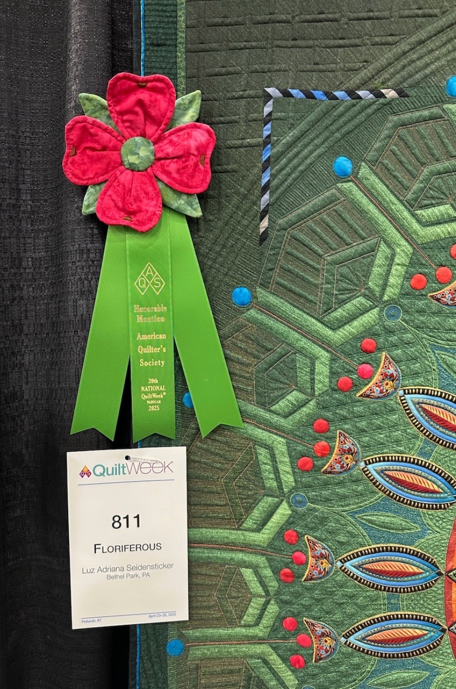 "Floriferous" by Luz Seidensticker won Second Place - Balanced Piecing and Appliqué at Houston 2025.