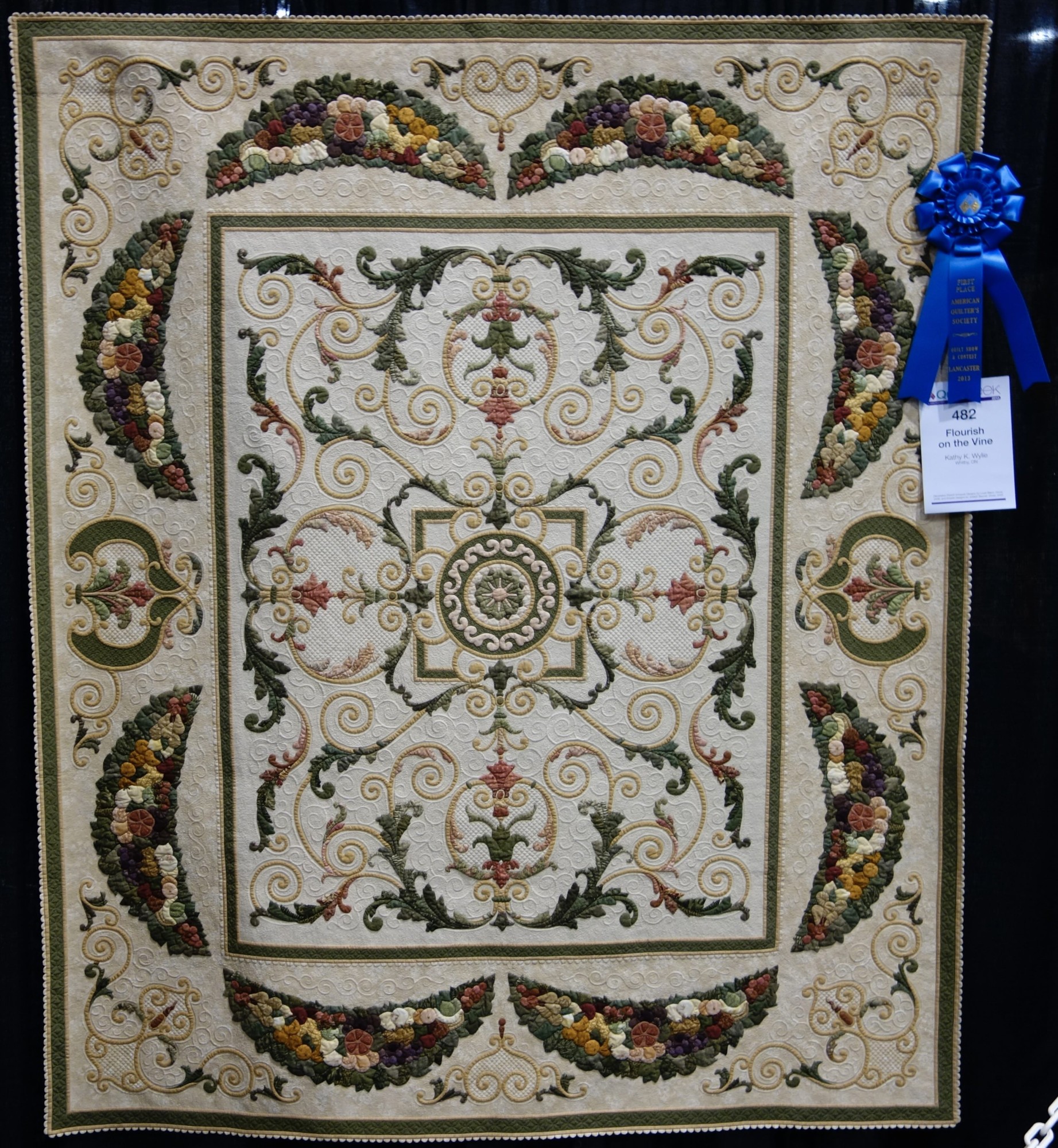 "Flourish on the Vine" by Kathy K. Wylie won 1st Place Wall Quilts-Home Machine Quilted at AQS QuiltWeek Lancaster 2013.