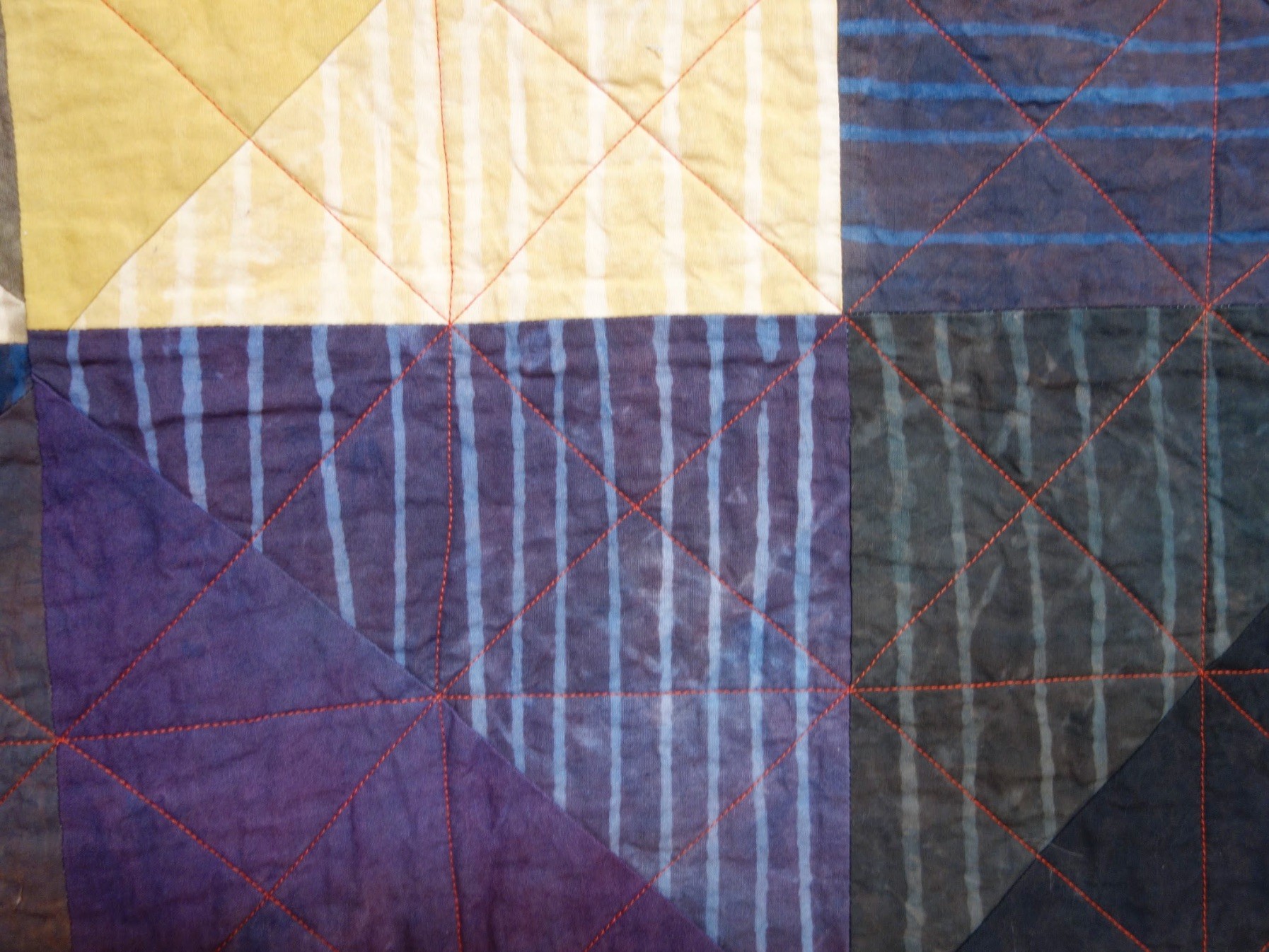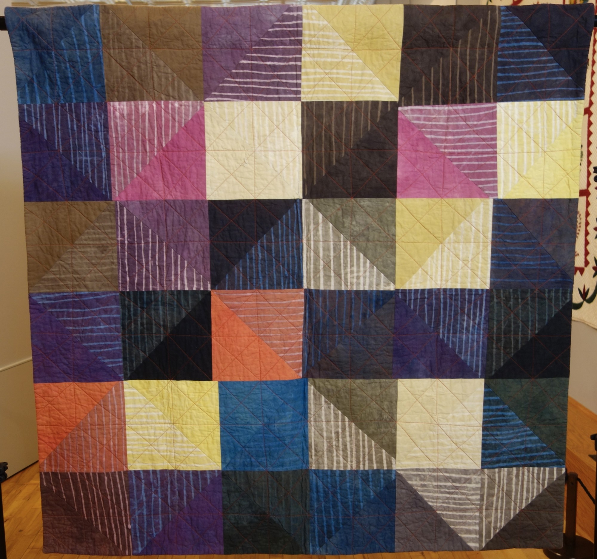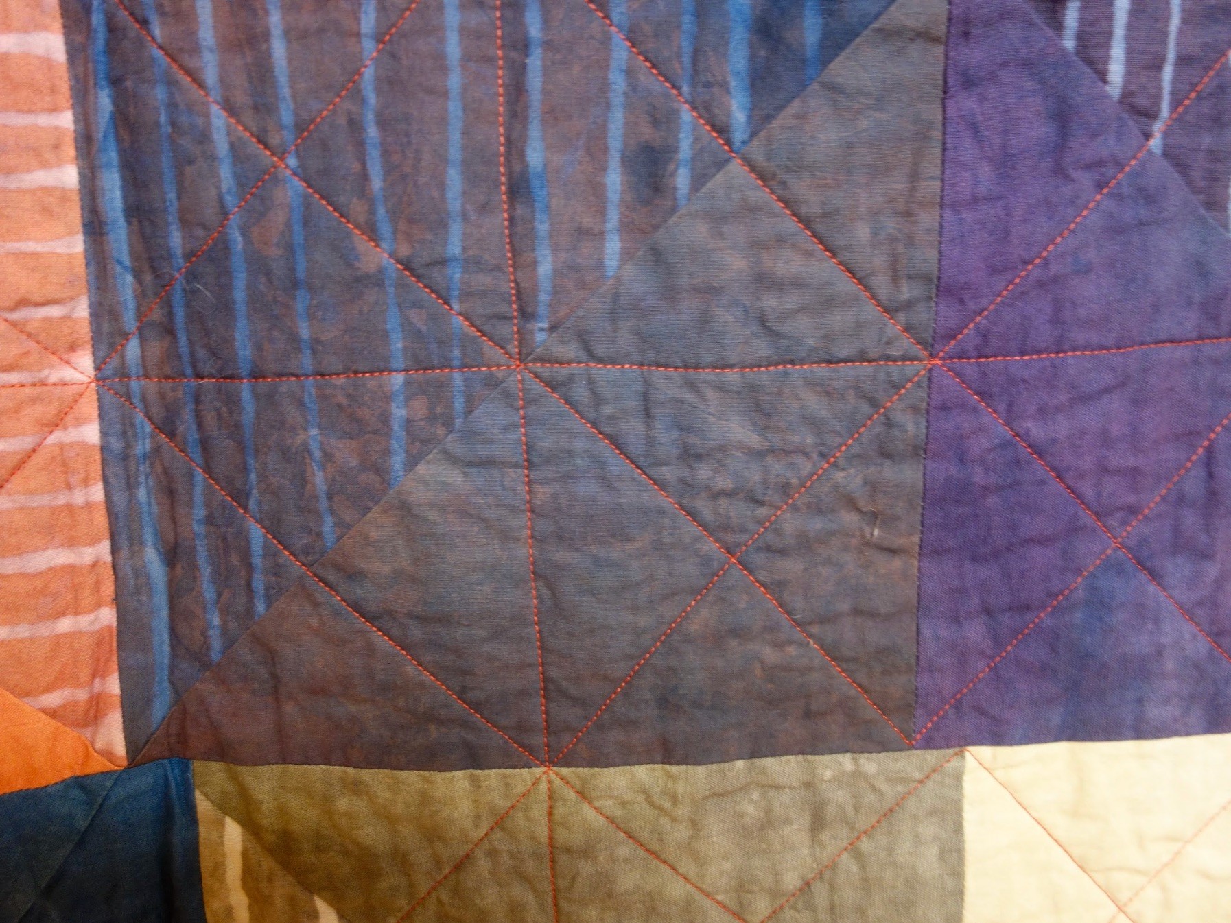 Kim considers How The Light Gets In a practice quilt, as she was really trying to learn what color each of the dyes she had would do, and what they would do when they were over-dyed with indigo.