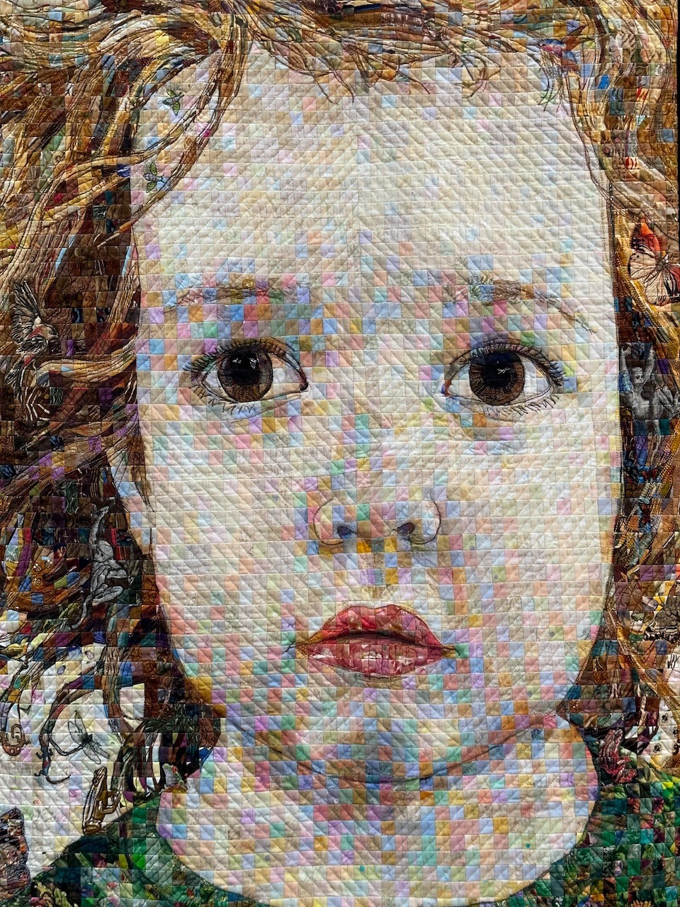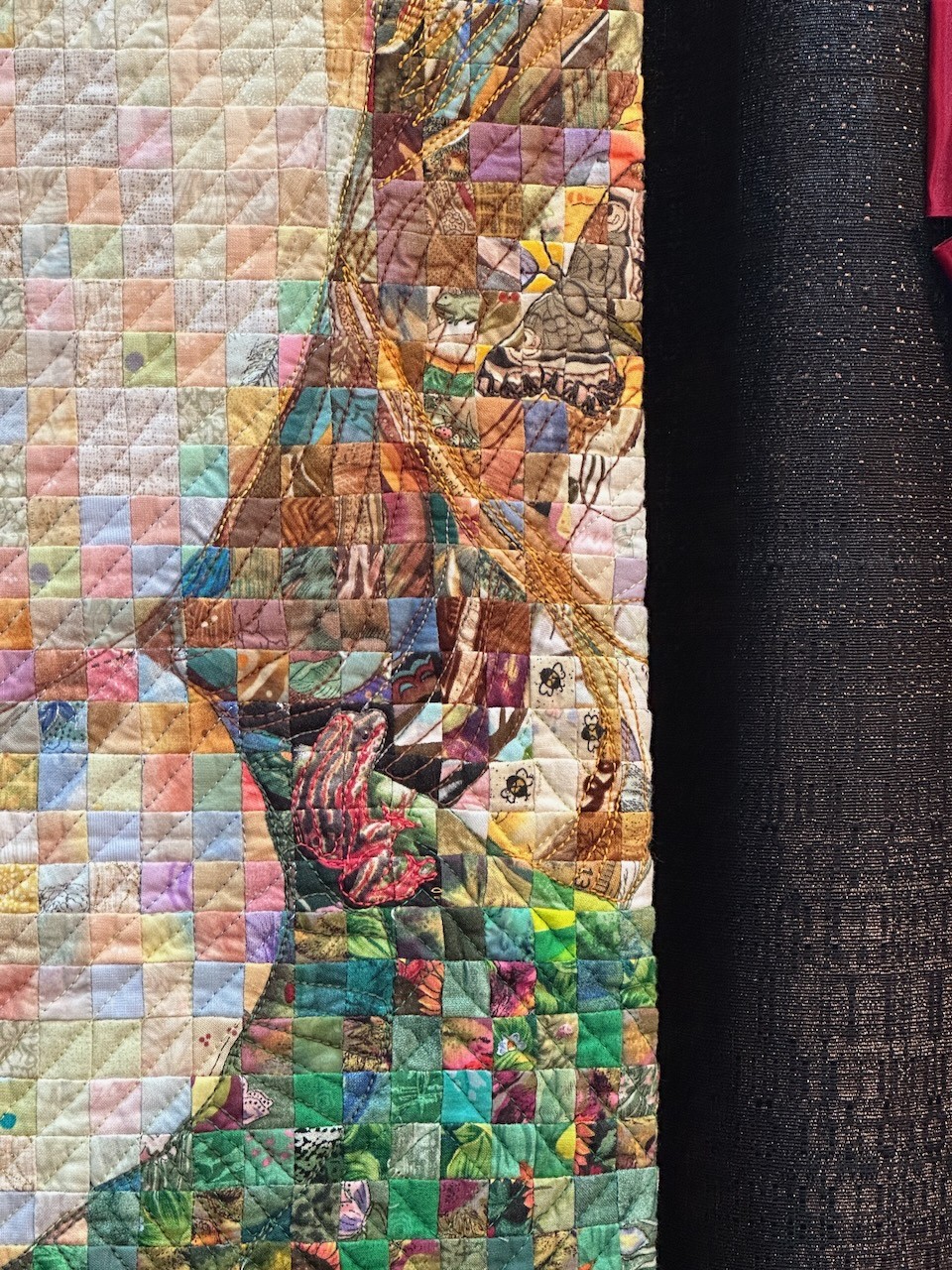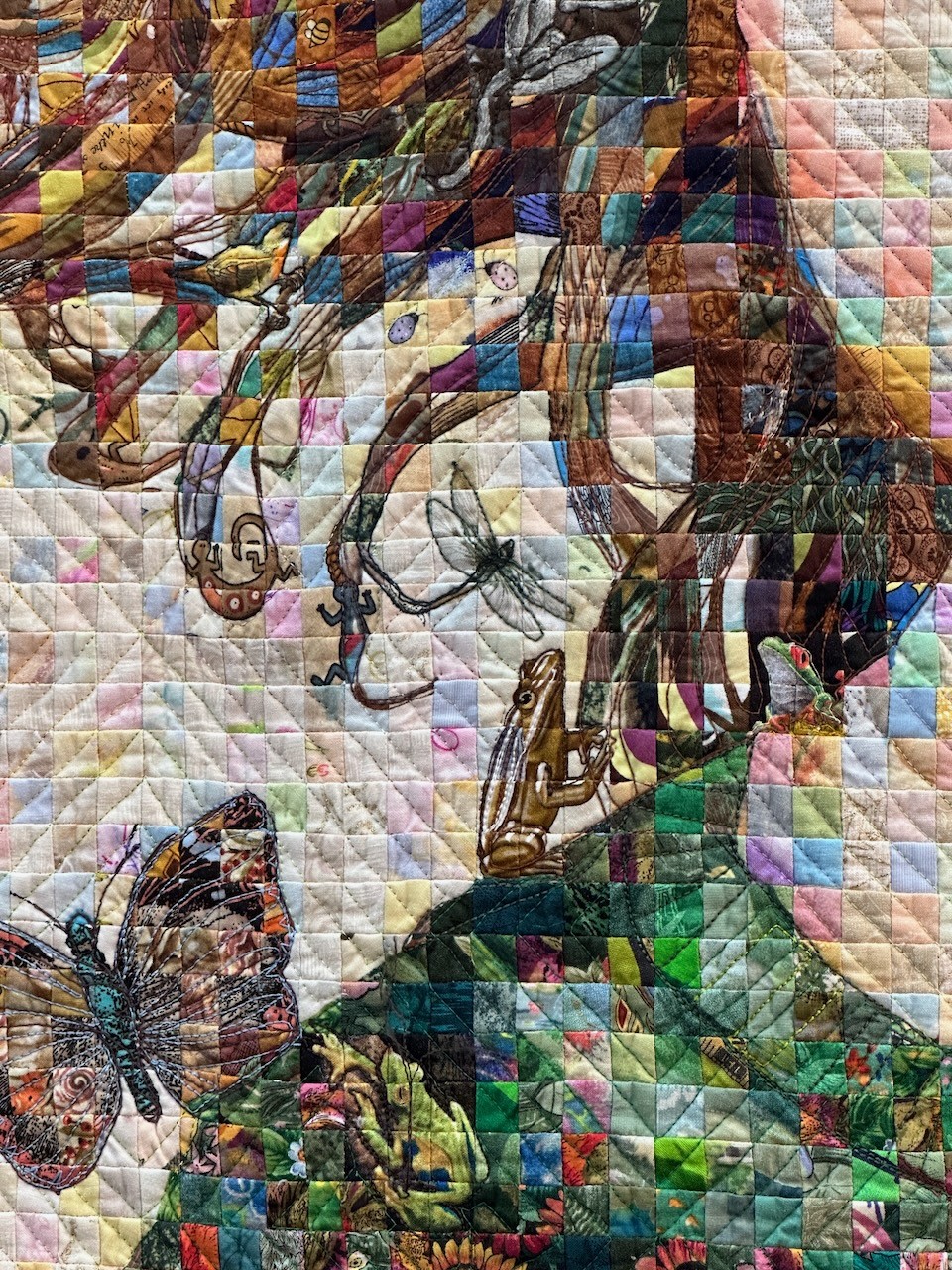 Monkeys in My Hair (Evie) by Deborah S. Hyde has just won the Handi Quilter Best of Show award at the 2023 Houston International Quilt Festival. It previously won the Best Wall Quilt Award at the 2022 AQS QuiltWeek in Grand Rapids. Go deep into the quilt and see if you can spot all of the details because it's here where you'll figure out where the quilt got its name. Deborah says, "Monkeys in My Hair has been my most ambitious project so far. There are 2 monkeys in her hair, but can you count the birds? The butterflies? The Frogs? The dragonflies? Even I have not taken time to add up the bees, flies, and ladybugs!"