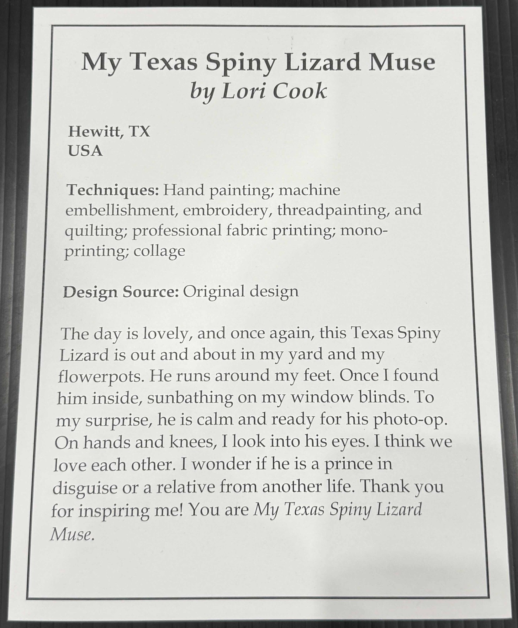 "My Texas Spiny Lizard Muse" by Lori Cook won First Place - Animal Kingdom at Houston 2025.