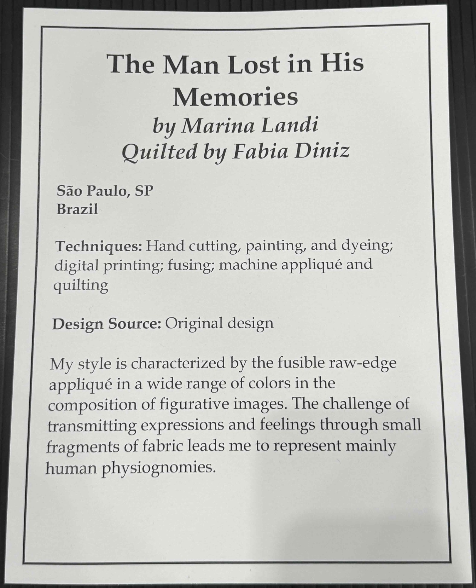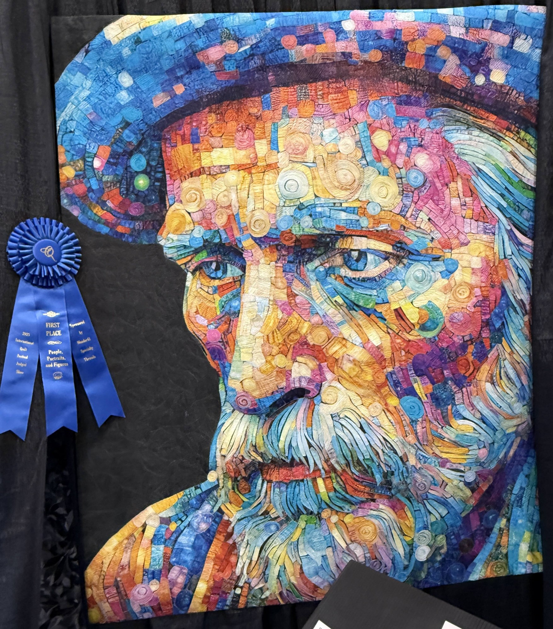 Viewer's Choice (Sponsored by Quilter's Rule) at Houston International Quilt Festival 2025; First Place - People, Portraits, & Figures (Sponsored by Wonderfil) at Houston International Quilt Festival 2025