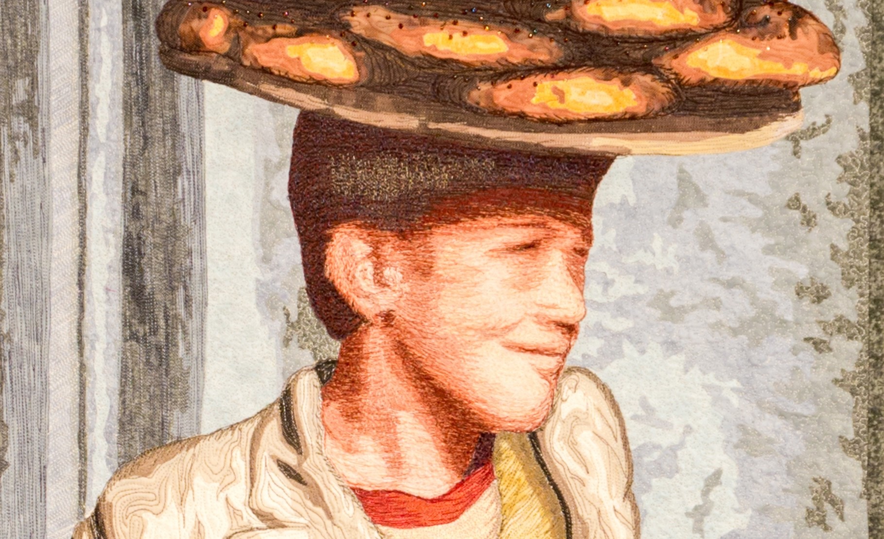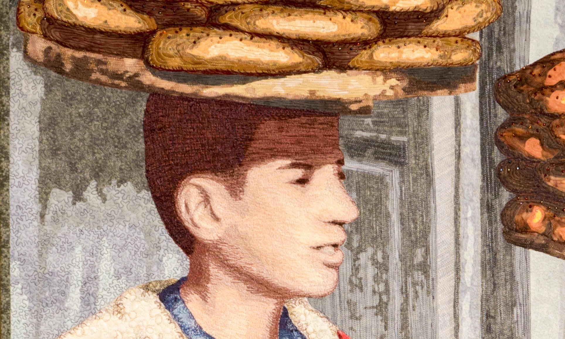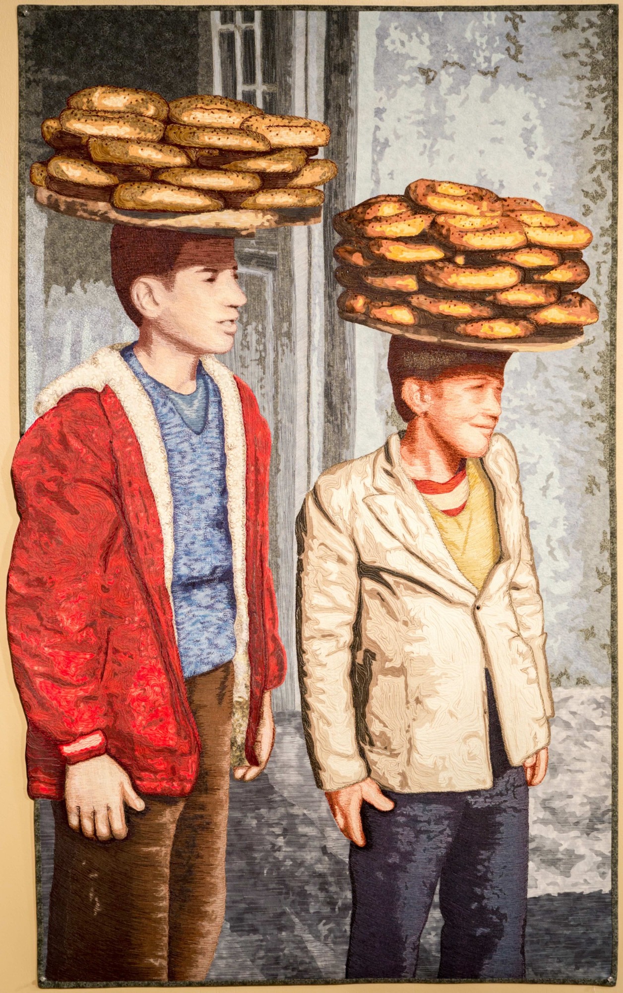 Artist Statement: "This portrait quilt is a window into the lives of two young men. Their culture, language, and religion may be foreign to us, but the energy, commitment to family and entrepreneurial spirit of these young boys is universally recognized."
