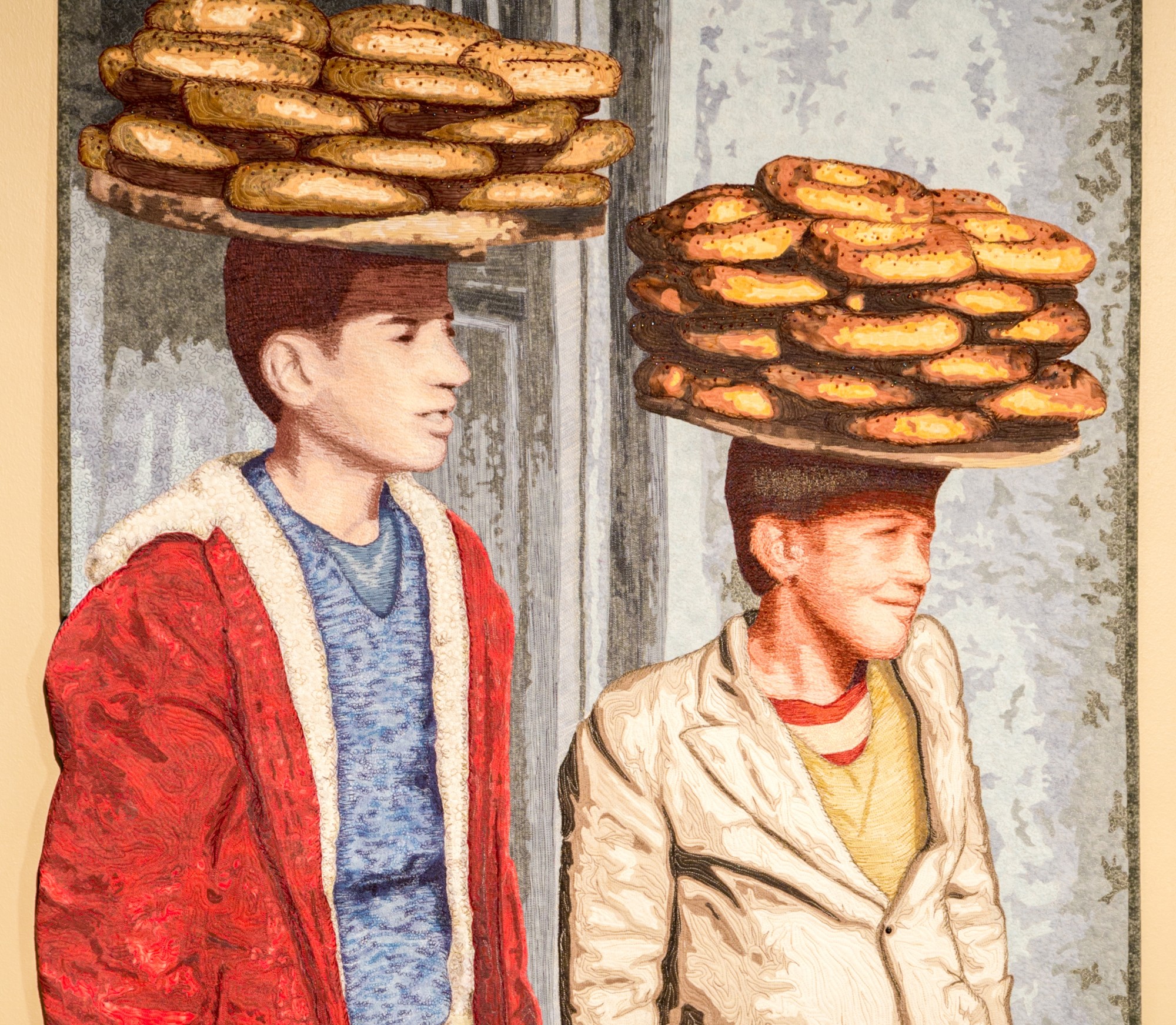 "Turkish Bread Boys" by Lea McComas was inspired by a photo she took while living in Turkey of young men selling bread.