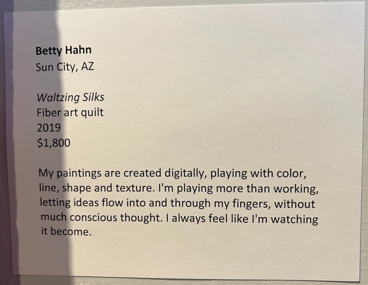 Waltzing Silks by Betty Hahn was featured as part of the Breaking Rules, Honoring Tradition Exhibit in Chandler, Arizona