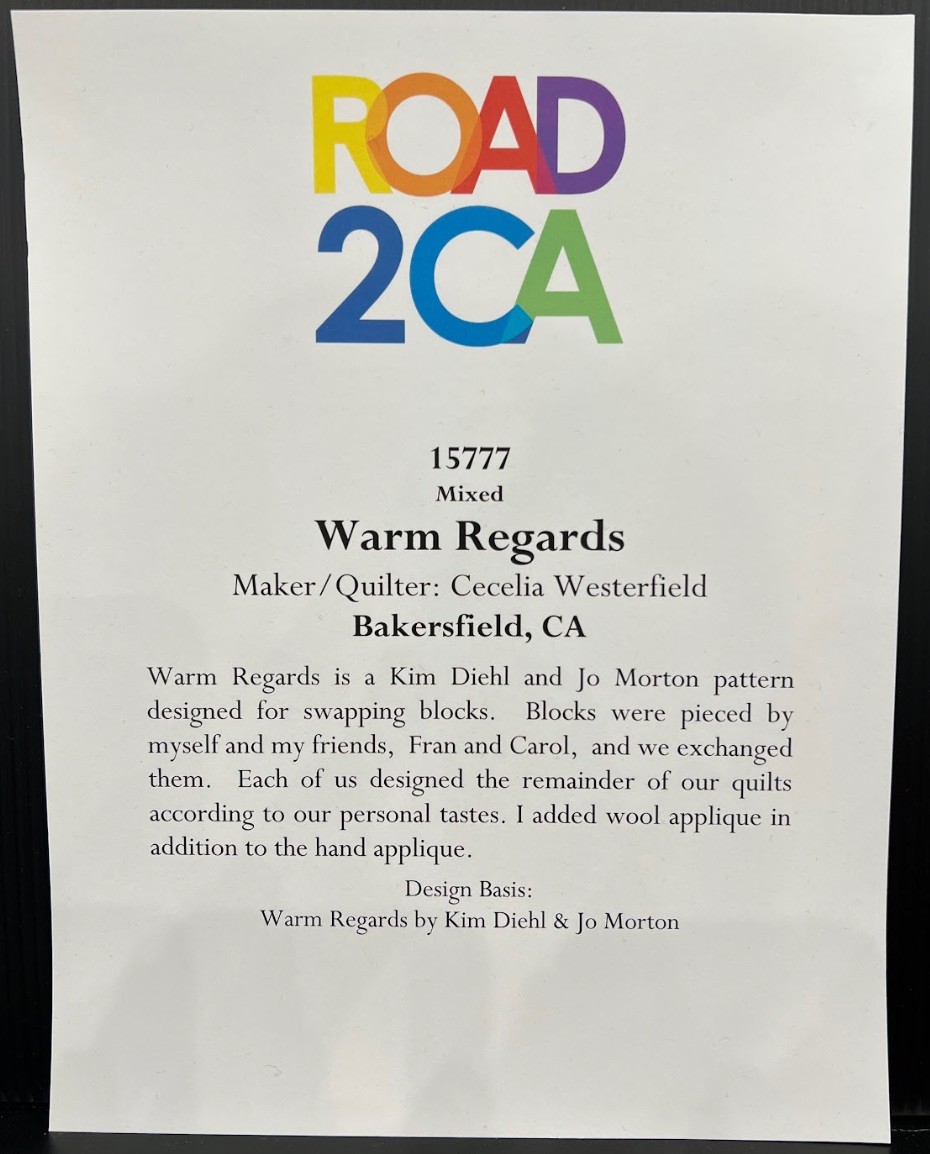 "Warm Regards" by Cecelia Westerfield received Pat Yamin's Judge's Choice Award at Road to California 2023.