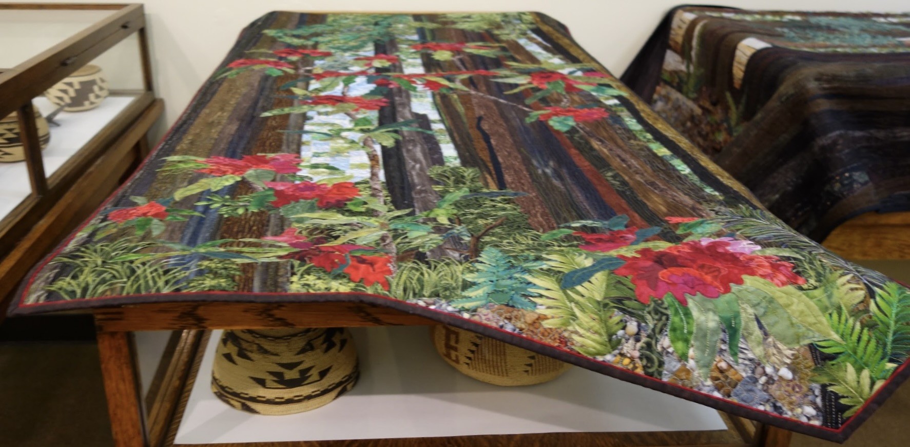 "Wild Rhodies" is a forest quilt from Pat Durbin that was displayed at the National Quilt Museum.