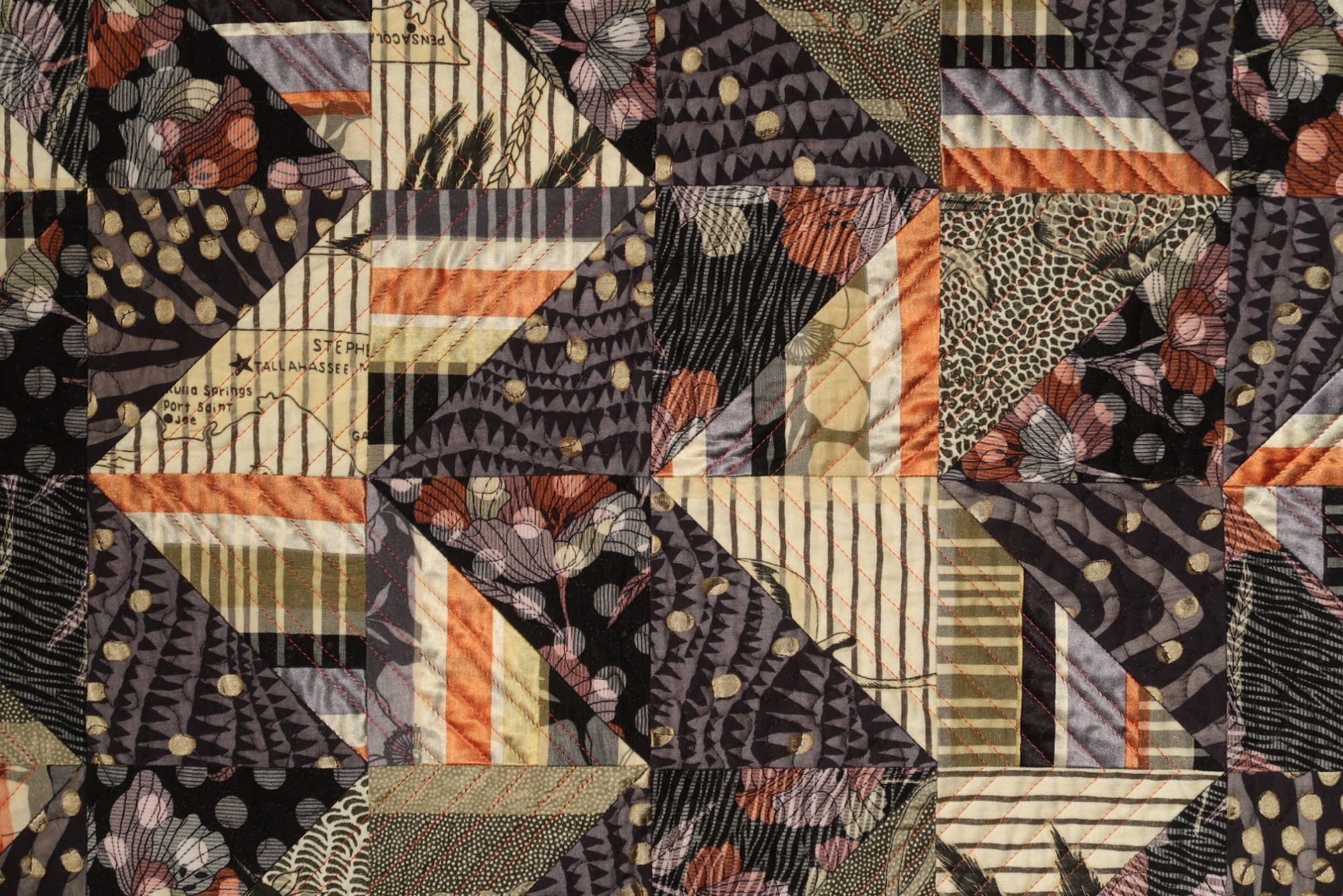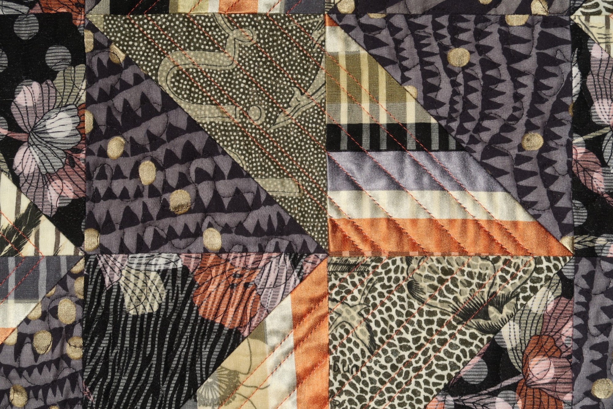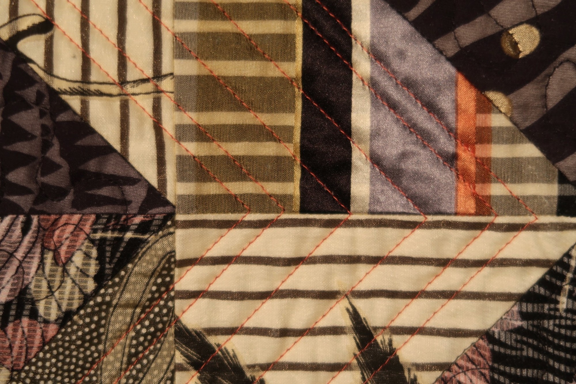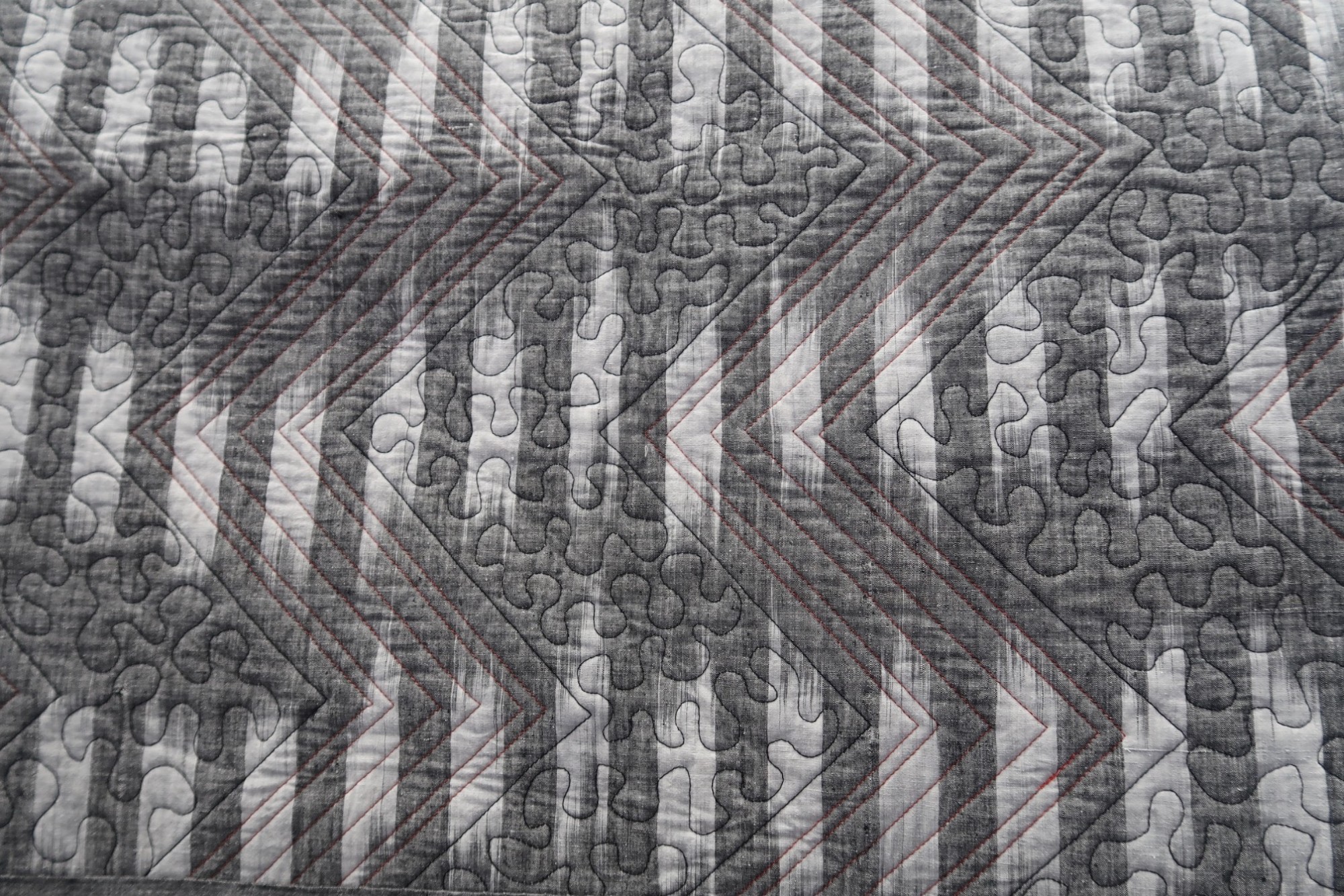 "Zig Deco Zag" by Julia McLeod was made by overlaying sheer fabric on top of of regular cotton fabric.