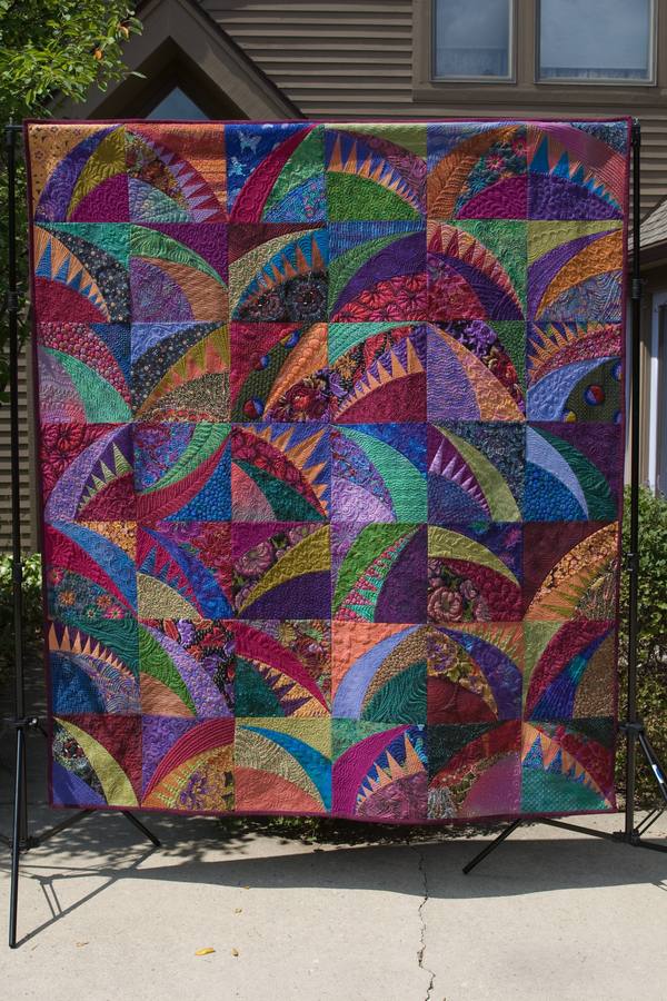 Heaven and Earth - This was a wedding present for a wonderful young couple. I quilted it after taking a workshop with Diane Gaudynski who is an incredible quilter and teacher. I used lots of silk thread and fine cotton (Aurifil or Mettler 60 weight) and more than 50 different colors of thread.