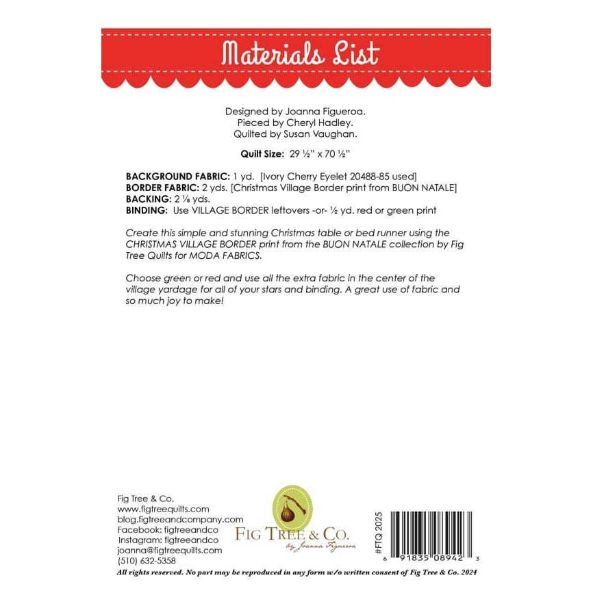 - 1 printed Christmas Village Runner pattern by Joanna Figueroa of Fig Tree & Co.