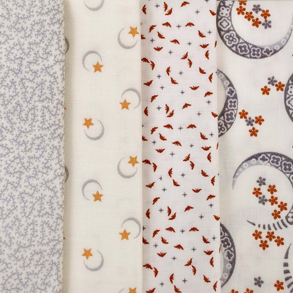 Moon prints with teeny tiny bats and ghosts.