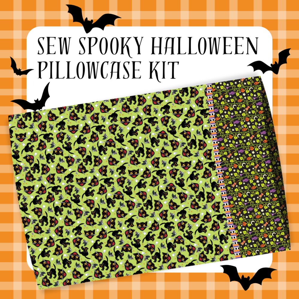 This is a trick-or-treat pillowcase kit for your pillow or candy!! It features Spooky Cute Halloween by Mary Engelbreit. This pattern uses the Easy "Burrito" method to make the pillowcase.