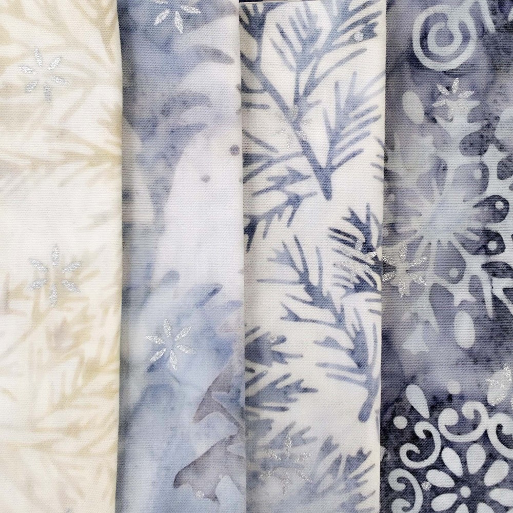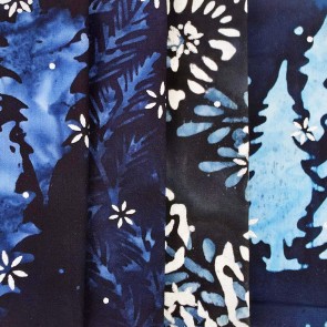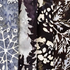 Winter colors with trees and snowflake prints in batik fabric.