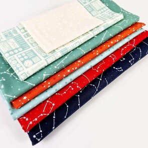 Make a rocket ship quilt with 321 Blast Off fabric by Moda. This kit is made in 5 columns, traditionally pieced.