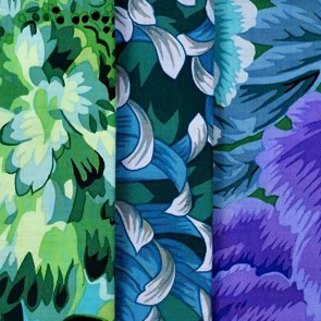 This cool bundle from Kaffe Fassett for FreeSpirit Fabrics includes 20 fabrics in cool tones of blues, greens, aquas, and purple. Turn it into a bold and beautiful quilt by itself or mix it with other Kaffe Fassett fabrics!